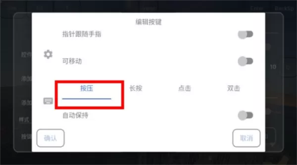 5、可以给虚拟的键盘按键设定按压、长按、点击、双击等操作,大家根据需要调整即可