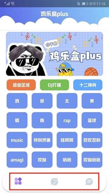 2、在语音界面,包括语音区域、DJ打碟和十二坤肖等频道,点击不同的图标和字体会发出相应的语音。