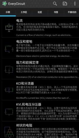 EveryCircuit(电路模拟器)是一款交互性极强的电路仿真软件,它专为移动设备量身打造,配备了独有的仿真引擎,精确地遵循欧姆定律、基尔霍夫定律等电路领域的核心原理。电路模拟器汉化版本,不仅支持从简单的分压电路到复杂的晶体管级电路的设计与仿真操作,还提供直流分析、交流频率扫描分析、瞬态分析等一系列专业功能,并且整个使用过程没有广告的干扰。