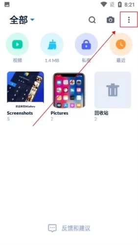 1、首先在本站好XGallery ,之后就是进入该软件,要想添加新相册,就需要在首页右上方找到【菜单栏】;