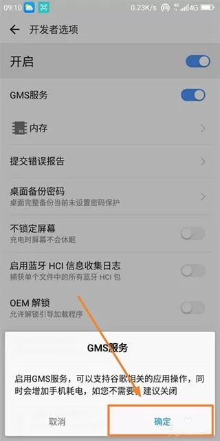 3、下方会弹出一个启动GMS的服务,无需理会,直接点击确定即可。