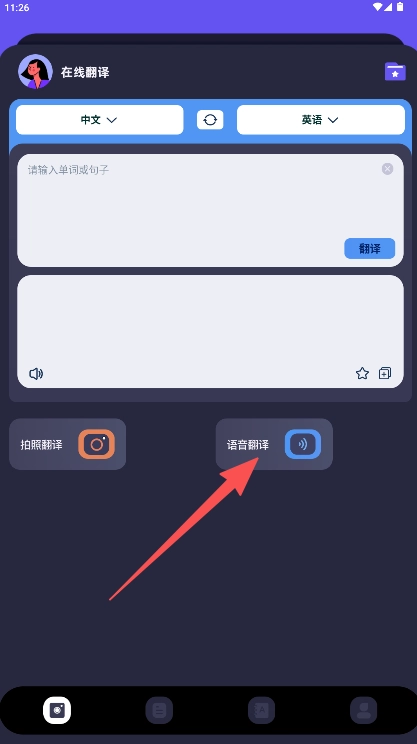 1. 在翻译首页,点击“语音翻译”按钮,即可进入语音输入界面。