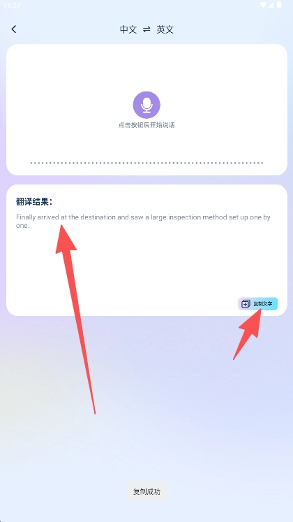 3、于结果页面,点击“复制文字”按钮,即可一键获取翻译内容。