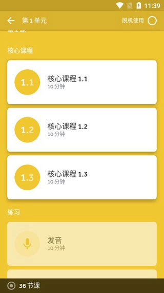 5、伴音:提供音频课程,用户可暂时离开屏幕,通过聆听进行语言学习。