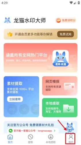 首先用户可以选择在本站最新版的龙猫水印大师,打开应用后点击页面右下角的“我的”。