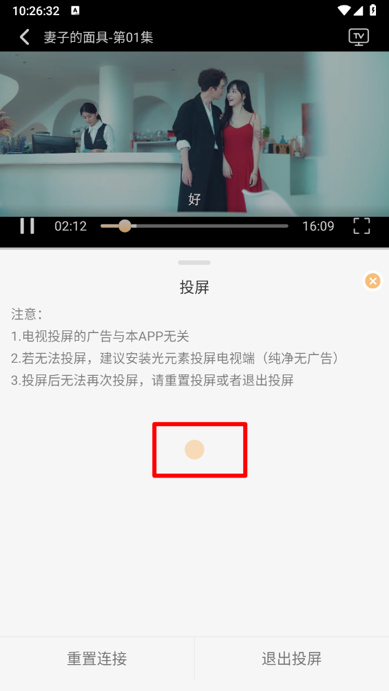 4、最后搜索投屏设备,完成连接后就能进行播放,手机与投屏设备需处于同一wifi环境中。