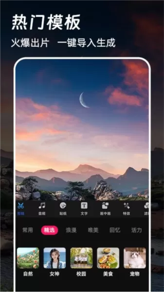 依托海量精心挑选的模板,无论是充满温馨的亲子时光、热闹的节日庆典、别具意义的旅行回忆录、令人赞叹的壮丽风景、妙趣横生的宠物趣事,亦或是潮流感十足的短视频,只需一键操作,就能轻松生成。这让视频制作过程变得简便迅速,充分释放你无限的创意潜能。