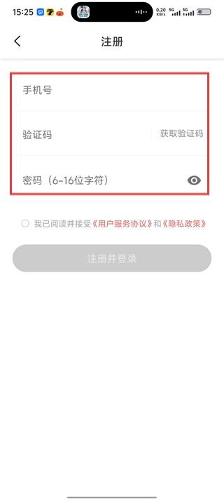 4、勾选已阅读并接受《用户服务协议》和《隐私政策》后,点击【注册并登录】,即可完成新账号注册操作。