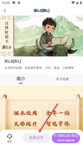3、在课程详情页,点击【免费试学】,进入课程的学习内容体验界面。