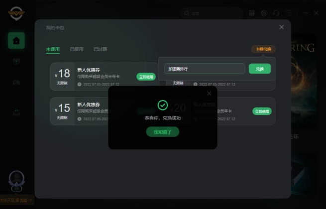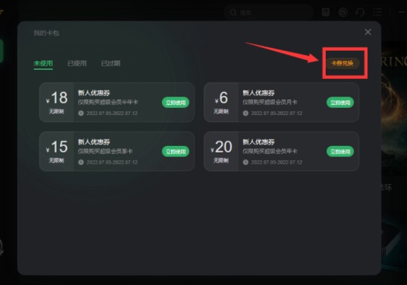 2.在弹出的兑换窗口,选择【卡券兑换】