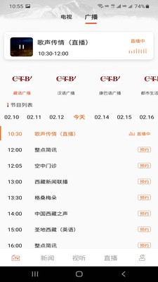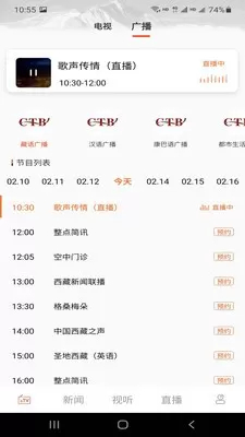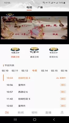 2、点击左侧广播,就能看到最新的西藏卫视、藏语卫视、影视文化电视直播,以及各类广播。