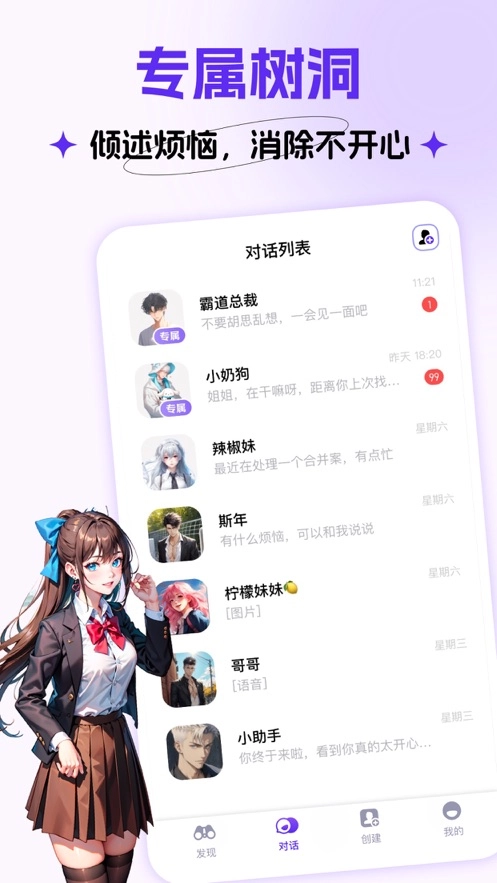 拥有丰富多样的2D角色库。用户可以根据个人喜好选择不同类型的AI角色进行互动。每个角色都有自己独特的个性和背景故事,为用户提供了丰富的交流内容。
