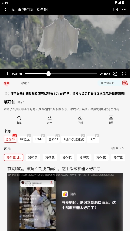 提供超清、4K、蓝光等多画质选项,适配不同网络环境。