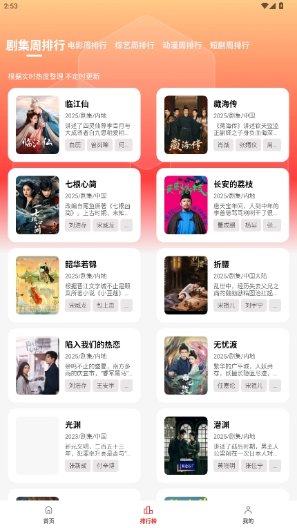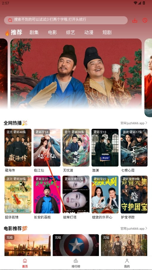 2.打开橘汁App,通过影视分类筛选,或者输入关键词搜索影视剧