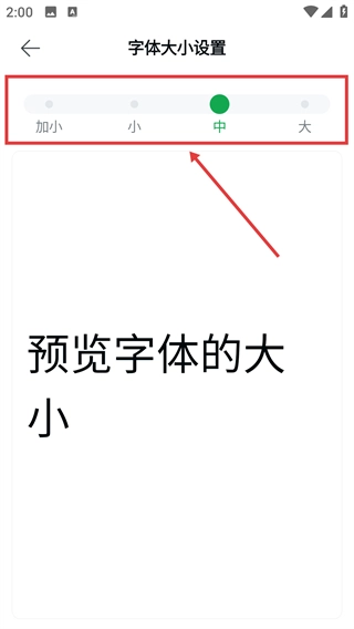 4、在字体大小设置页面拖动滑块,选择心仪的字体大小(如加小、小、中、大)。