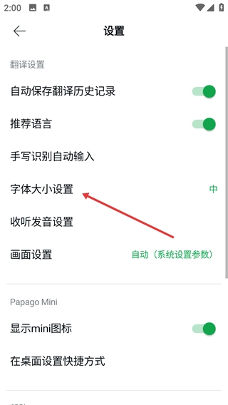 3、在设置页面点击【字体大小设置】选项,进入字体大小设置页面。
