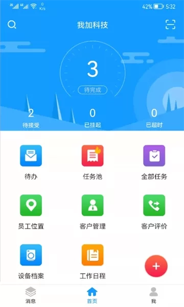 2、多种多样的任务项目,有待办任务、待派发任务、客户管理以及在线回访等功能;