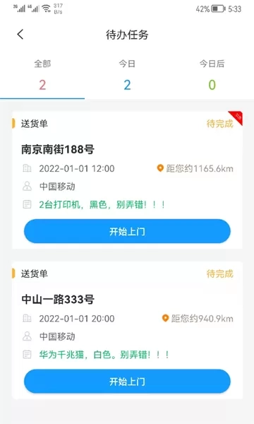 3、划分了不同的抢单类别,以蓝色、绿色与黄色不同的数字展示了全部、今日与今日后的订单;