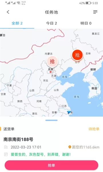 4、抢单界面极为清晰,与其他平台的列表模式不同,此页面呈现的是单个的大图订单标签。