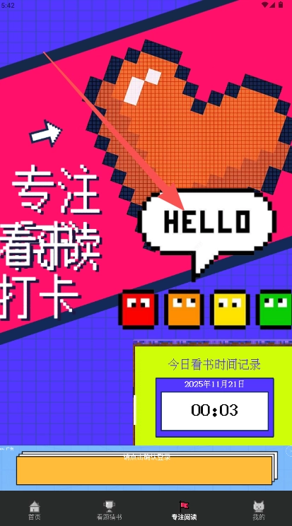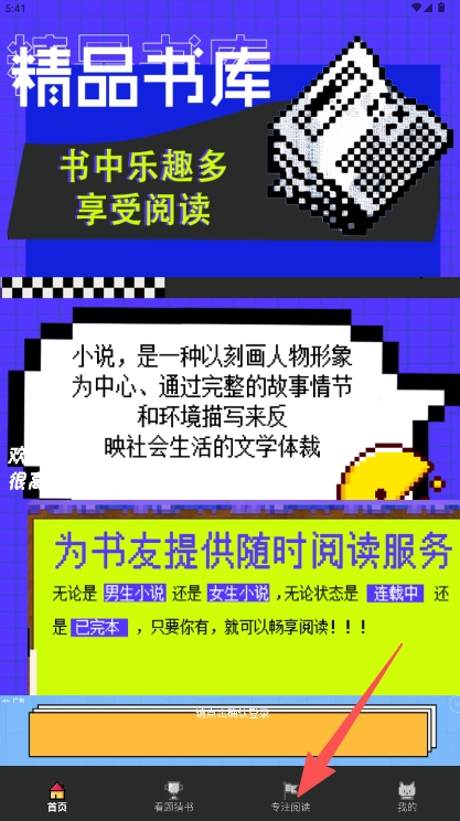 1. 于首页底部的导航栏中,点击“专注阅读”,即可进入阅读打卡页面。