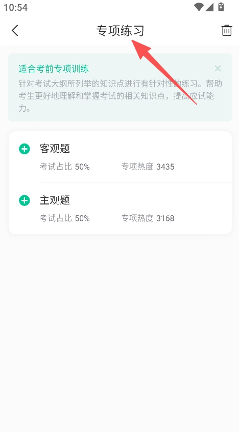 1、具备专项练习功能,分客观题、主观题分类训练,助力考生针对不同题型强化考点,功能实用。
