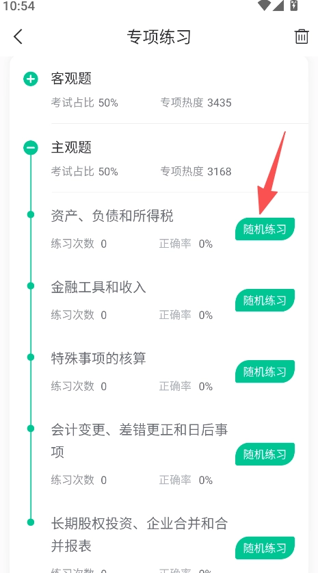 2、支持随机练习功能,可随机抽取知识点题目,模拟考试随机出题场景,功能有效。