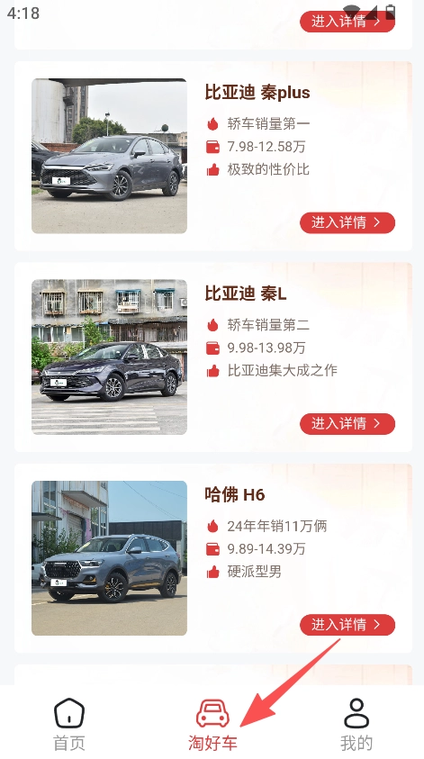 2、在淘好车页面选择目标车型,点击进入详情。