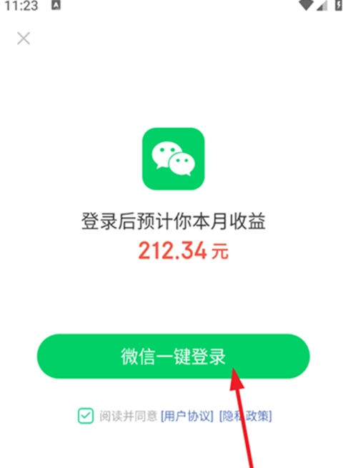 3、点击同意并继续按钮,最后点击微信一键登录即可开始挣钱了。