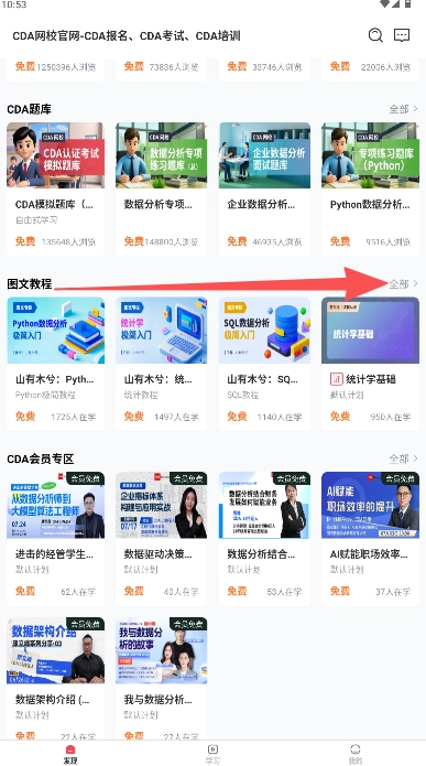 《CDA数据分析师》作为专注于数据分析领域的专业学习平台,核心围绕系统化课程体系与实战训练模块展开。其显著特色体现为清晰的课程架构,整合了视频授课、图文详解、模拟习题集等多元学习形态,可适配不同阶段学习者的个性化需求。平台的核心优势在于内容兼具专业性与实用性,通过融入真实业务案例与行业落地场景,助力学习者夯实数据分析的核心能力体系。此外,平台还提供了丰富的学习资源,其中部分内容面向用户免费开放,并支持自主调控学习节奏,无论是职场从业者还是在校学生,都能借助该平台实现数据技能的高效提升。