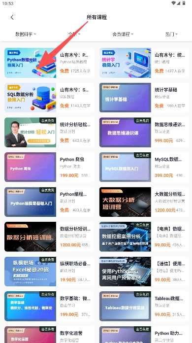 1、配备课程分类浏览和关键词搜索功能,助力用户快速找到契合需求的学习内容及对应难度等级。