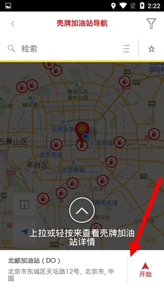软件随即会呈现周边的壳牌加油站信息,我们只需选择其中一个并点击前往就行。