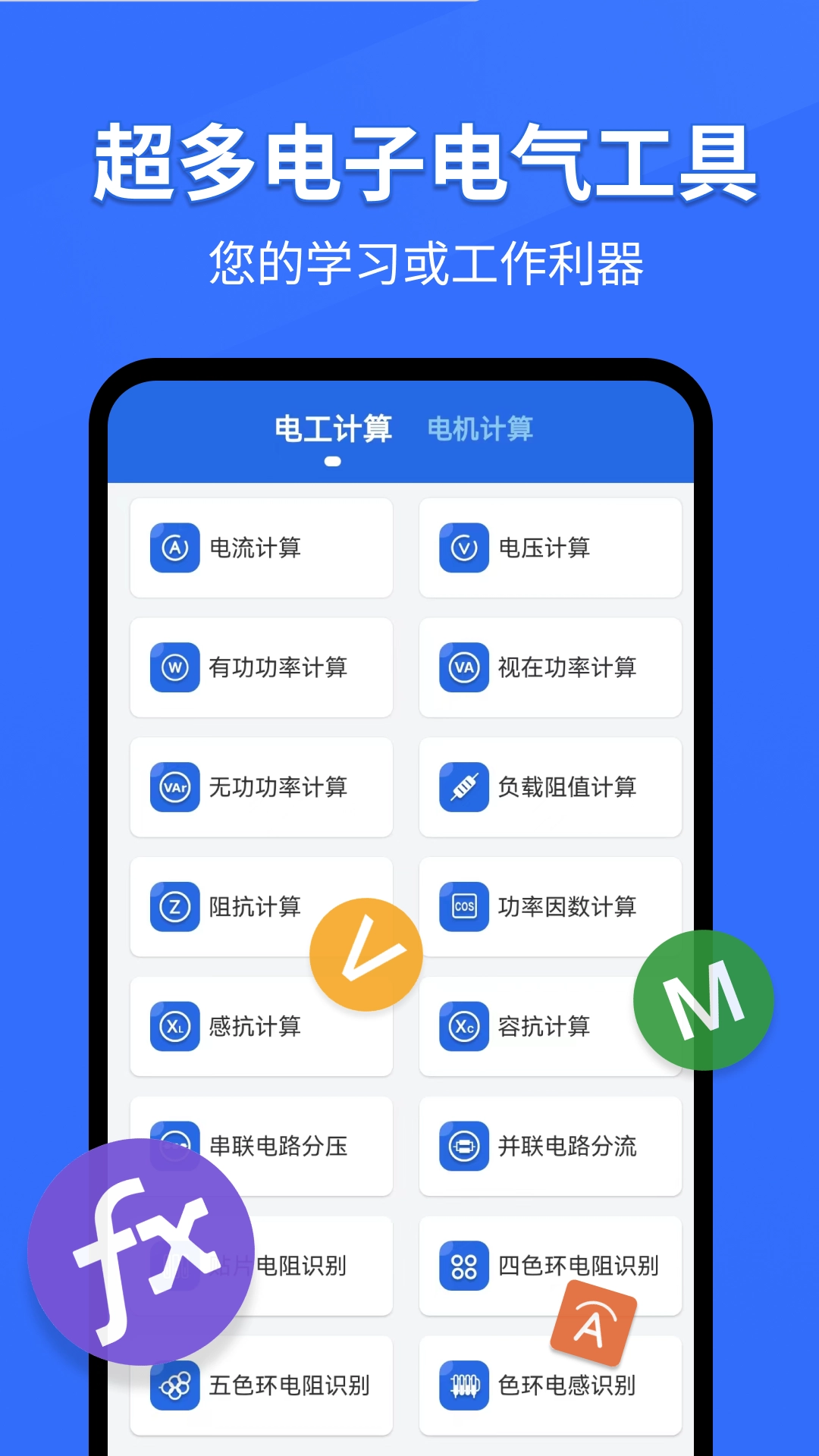该应用了电工计算工具,支持各类电工公式的运算处理。