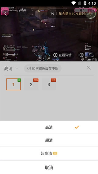 选择缓存视频的清晰度;
