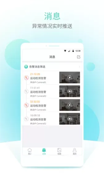 4、报警通知: 当监控区域出现异常情况时,用户能及时收到报警通知。