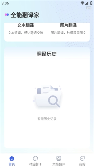1、打开在首页就能使用不同的翻译功能,点击相关功能就能打开;