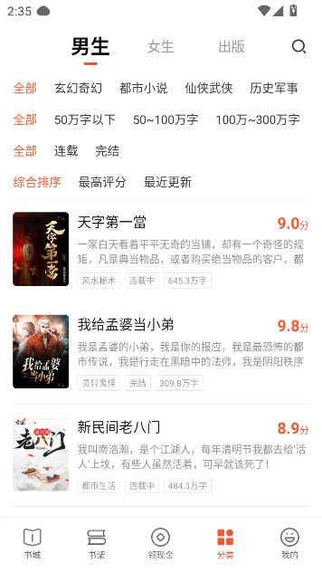 智能分类导航:依据都市爽文、玄幻修仙、盗墓悬疑等细分题材进行精准分类