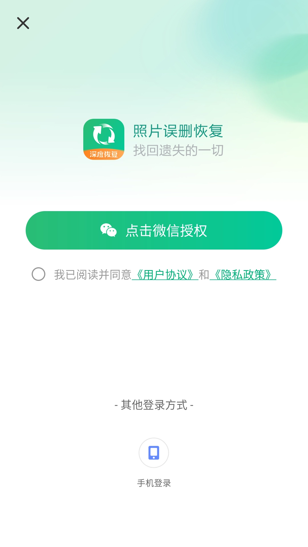 选择微信或者手机号登录