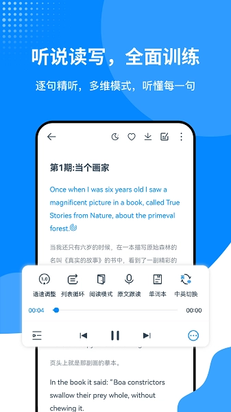 3、语音同步:中英文字幕与音频同时突出显示,便于比较和理解。