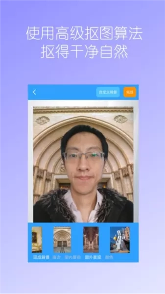 4. 自定义背景:免费抠图,轻松定制背景。不仅有现成背景可供选择,还支持自行定义背景。
