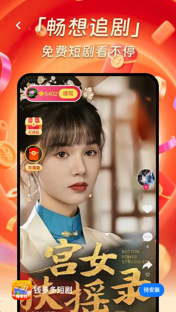钱多多短剧是一个汇聚了海量短剧资源的观看平台,每天都会更新喜剧、悬疑、爱情等不同类型的剧目。用户能通过观看视频来积累积分,并用积分兑换奖励,这样在休闲娱乐的过程中还能获取额外收益,既能满足日常看剧的需求,又能实现趣味参与的体验。