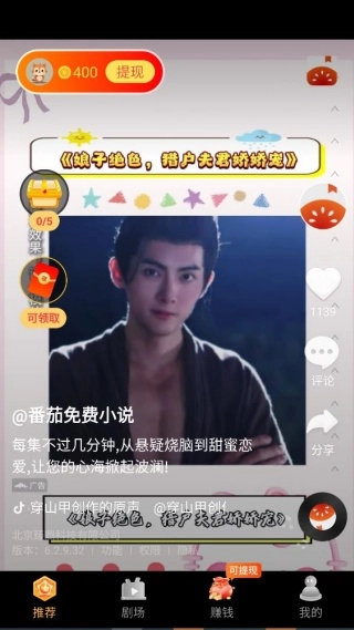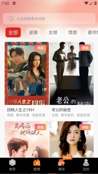 1、安装完成并打开软件后,就能开启一边看剧一边赚取收益的模式了。