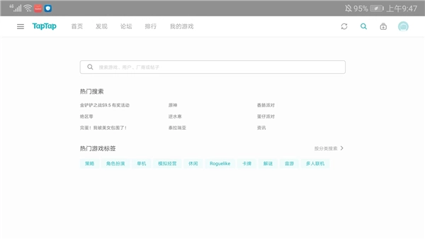 1、打开TapTap HD版,进入应用主界面后,能看到【首页】【发现】【论坛】【排行】【我的游戏】等频道,接着可以挑选一款自己感兴趣的游戏。