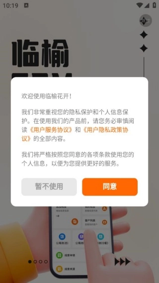 1、安装软件并打开后,会弹出欢迎使用的界面,此时点击同意即可。