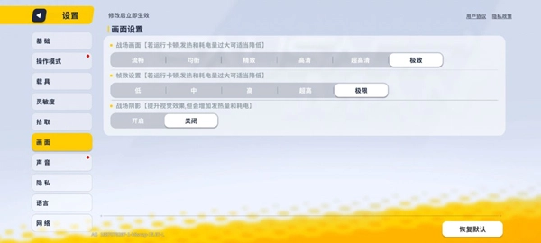 进入系统设置界面,找到画面相关的配置项,将战场场景的显示效果以及帧率等参数都调整到最高级别。