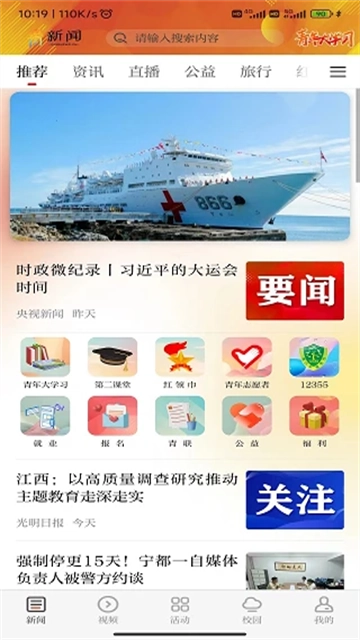 青新闻,由江西日报社与共青团共同推出的这款新闻类应用,始终围绕青年群体的需求与喜好,构建起集信息整合、互动交流、活动组织与服务支持于一体的线上综合平台。在这里,用户既能及时掌握各类社会热点动态,也能获取考公、考研等学业发展相关的实用资源;平台覆盖领域广泛,即便利用碎片化时间浏览,也能快速把握国内外发展趋势。它通过文字、图片、视频、直播及AR互动等多元形式,不断创新传播模式,不仅呈现全球新闻、精选转载外媒重要资讯,助力用户了解国际前沿,还能让大家领略全球美食文化。此外,该应用还整合了江西各地的招聘信息,用户可根据自身需求筛选阅读内容,感兴趣的朋友不妨亲自体验一番。