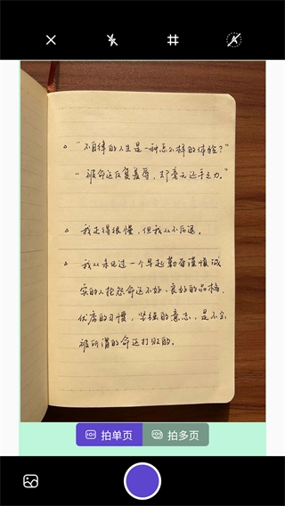 用户既能够直接将镜头对准需要扫描的文件,也可以通过点击左下角的图标,从相册中选取并上传图片文件。