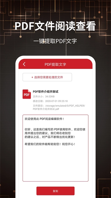 提供文字提取功能,支持一键导入PDF文件,可对文件内文字进行快速识别,还能一键完成文字内容的复制与粘贴操作。