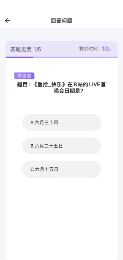 当某个场次处于售票阶段时,用户可进入相关页面参与抢票,但在开始抢票前需完成答题环节。