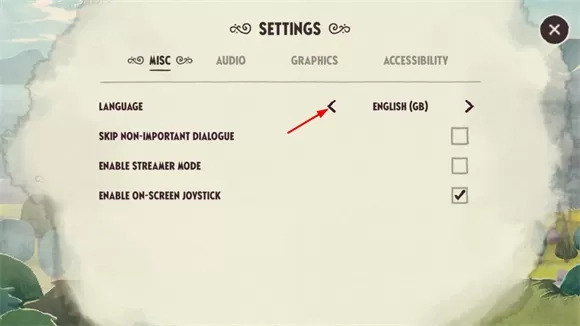 2、然后点击language旁的箭头切换语言。