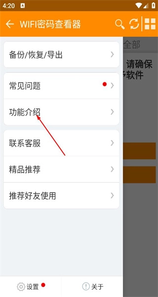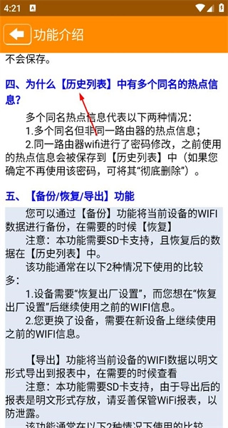 WiFi密码查看器还拥有密码备份和恢复的功能,能保证用户在更换设备或者重置系统之后,依旧可以找回那些重要的密码。